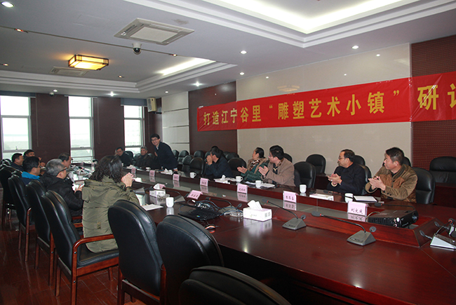 2017年1月4日,由南京雕塑協會主辦的關于打造南京市雕塑特色文化小鎮的研討會在江寧區谷里街道政府會議室召開。與會代表包括了南京市9家文化創意產業的協會會長、秘書長和南京大學周凱教授(江蘇省文化特色小鎮評委會主任)、金陵科技學院動漫學院袁曉黎教授、南京鄭和博物館劉文慶所長、谷里中瑯藝術館館長陳昌喜先生及江寧區文聯書記王曉丹、谷里街道的幾位領導出席研討,會上,各位大咖進行了深入的研討和交流。一直認為,谷里雕塑行業基礎好,區位優,文化濃,可持續。是打造雕塑小鎮的理想所在!