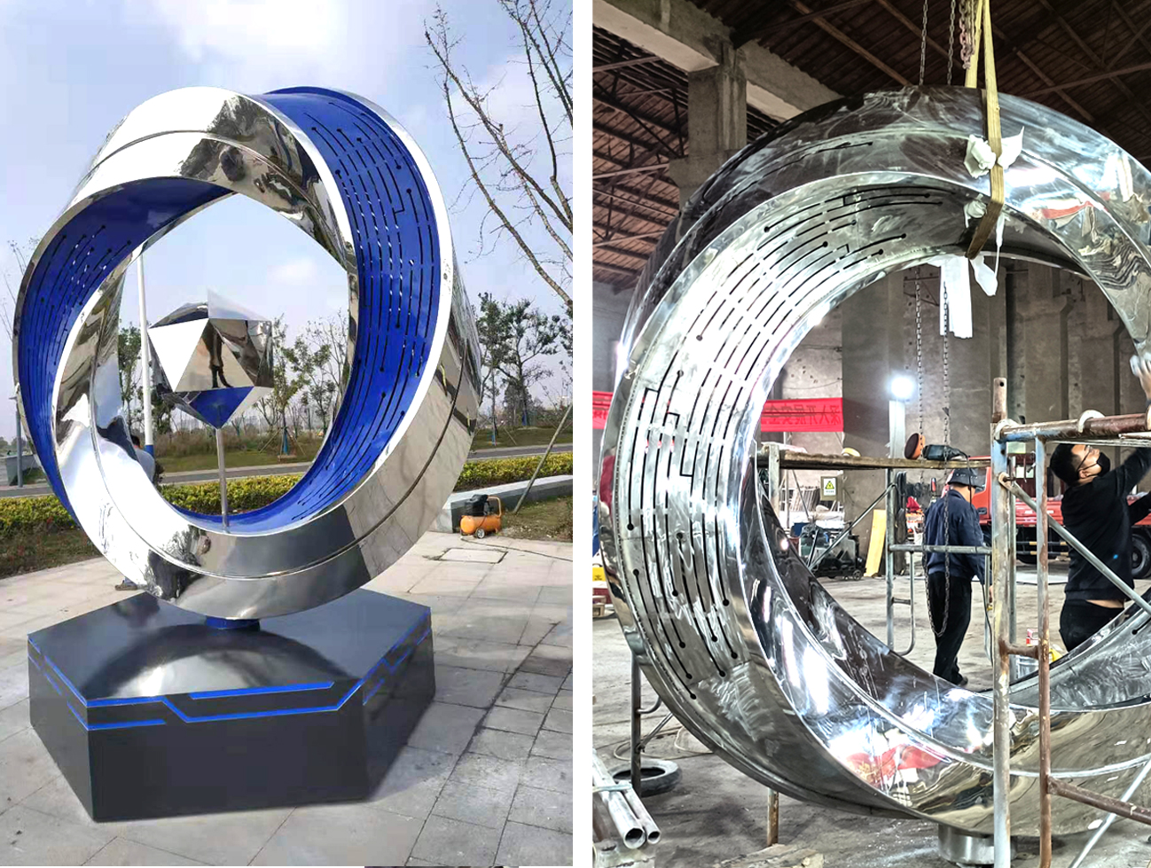 工程案例:南通師山廣場不銹鋼燈光雕塑-《莫比烏斯環》
